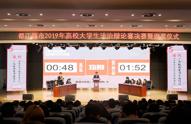 11月28日,由我校承办的“2019年都江堰驻市高校大学生法治辩论赛”决赛鸣金收兵。四川省委依法治省办副主任、省司法厅党委副书记、副厅长王彬,都江堰市委常委、宣传部部长唐小峰,市人大常委会副主任杨锋,副市长达军,市政协副主席严代雄,省委依法治省办秘书处副处长吴舒,成都市司法局普法与依法治理处副处长施尚君等莅临活动现场,我院党委书记管永林、副书记黄天贵、副院长邓春生出席了活动,管永林书记代表学校在活动中致辞。