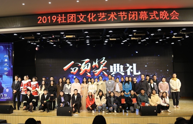 11月28日晚,2019年“青春心向党﹒建功新时代”社团文化艺术节闭幕式晚会在多功能二厅举行,校团委书记杨婧和各学生社团指导老师与各社团代表参加了此次活动。