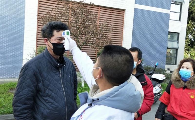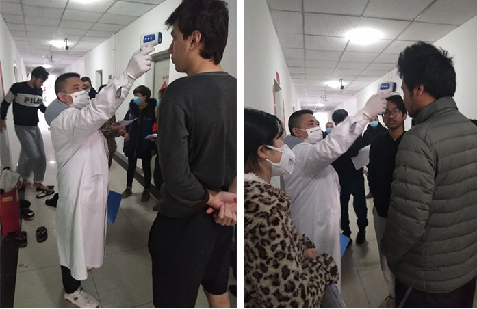 岳文喜副院长检查后勤防控工作并带头测量体温