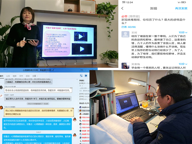 思政部教师,心理健康教育中心教师精心备课,积极学习各种在线教学方法,同时充分挖掘疫情防控过程中的育人元素,大力宣传习近平总书记重要指示精神,宣传党和政府关于疫情防控的一系列重大决策部署和各地区各部门贯彻落实的有力行动,融入疫情防控过程中涌现出的先进典型、英雄人物的感人事迹,贯穿教育教学内容之中,上好春季开学“第一课”。
