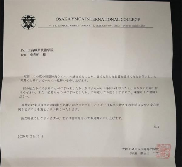 我校校长李春明同志代表全校师生表达了对日本大阪YMCA国际专门学校及泰国格乐大学此义举的敬意,要求我校及时将口罩发放给学生及教职工,并感谢两所学校雪中送炭的真情和祝愿中日、中泰友谊长存。患难见真情,我校将把此举铭记在心。