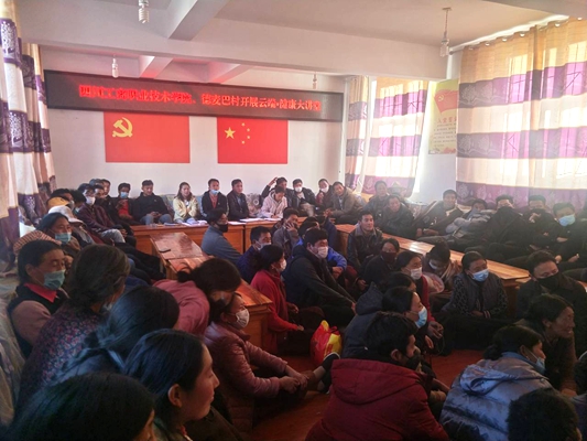 在疫情防控期间,团委副书记、我校党委派驻博美乡扶贫干部刘彦廷与驻村工作队通过大量走访调研后,会同我校酒食系党总支宣讲团经过严谨的初步选题、备课、教案审核、公开宣讲等准备工作,这是继 “营养健康小知识课程”后,又一次规模更大的面向全体村民开展疫情防控“健康防疫应知应会”云端课堂宣讲,得到德麦巴村委和农牧民群众的一致认可和强烈反响。