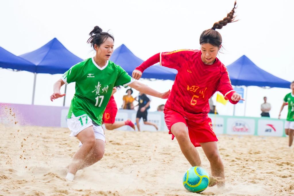 8月5日至10日,第十五届全国运动会群众比赛足球项目沙滩足球决赛在广东阳江火热开赛。晋级决赛的22支队伍各展风采,共赴这场充满活力与激情的体育盛宴。我院健儿陈坤慧作为四川沙滩女足主力随队征战,与队友们并肩奋战、敢打敢拼,在女子组三、四名决赛中以6:2击败辽宁队,摘得铜牌,不仅为四川代表团赢得荣光,更刷新了校史上高水平高层次体育竞赛获奖纪录。