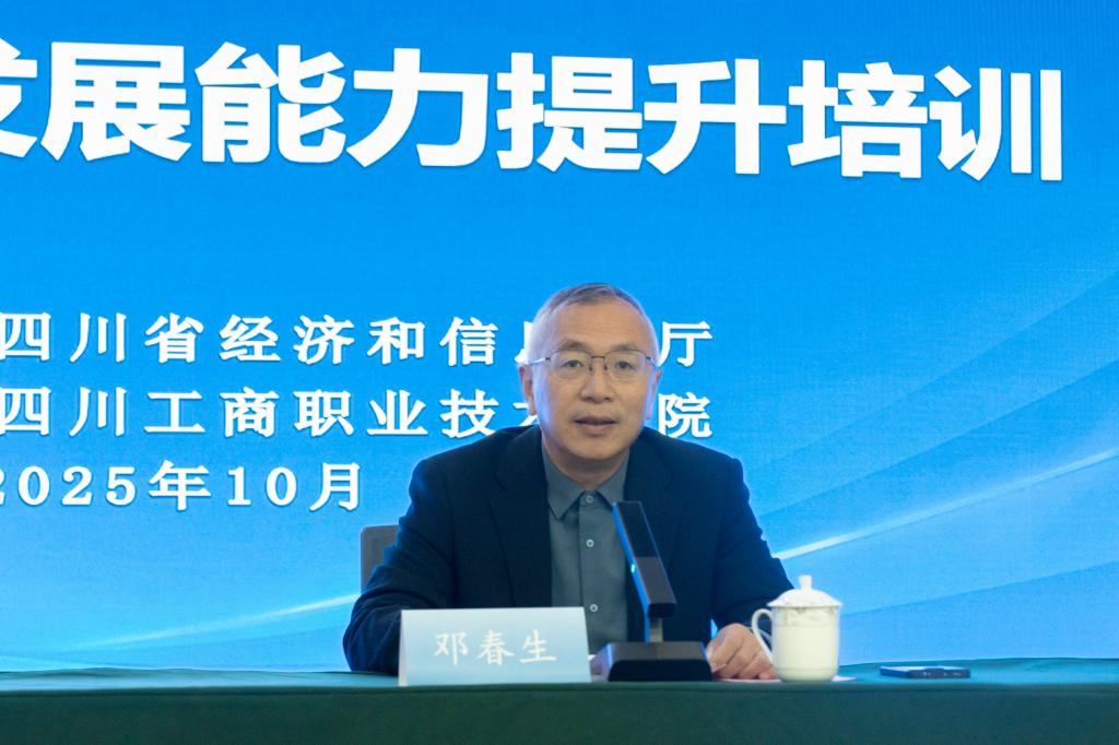 邓春生在致辞中详细阐述了学院的办学历史、规模与特色。他指出,本次培训要以习近平总书记对四川工作系列重要指示精神为根本遵循,全面落实省委、省政府关于全省39个欠发达县域托底性帮扶工作部署要求,精准把握欠发达县域工业产业人才需求,进一步提升相关县域经济和信息化系统人员、工业企业管理人员及技术人员综合能力。他强调,培训要聚焦高质量发展,助力加快构建新发展格局,进一步增强欠发达县域整体实力与可持续发展能力。