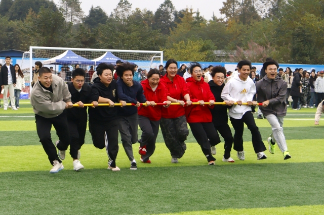 集体赛项为运动会增添了更多的乐趣,趣味十足的“旋风跑”“摸石过河”项目,让赛场充满了欢声笑语,让同学们在竞争中增进了友谊与协作。