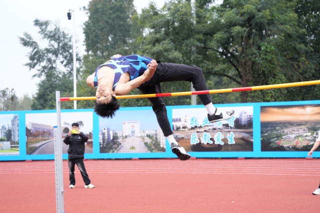 比赛过程中,跑道上,短跑运动员如离弦之箭,爆发着速度与激情;田赛场地上,跳高运动员和跳远运动员身轻如燕,一次次挑战新的高度和远度。来自国际旅游与体育学院休闲体育专业的夏㻚同学,在男子跳高项目中惊艳全场,以1.81米的成绩一举刷新赛会纪录,书写了学院新的成绩。