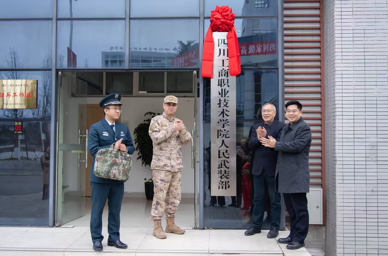 2026年1月22日下午,我院举行人民武装部揭牌仪式。学院党委副书记、院长邓春生,都江堰市人民武装部部长周晓枫出席仪式并讲话。仪式由学院党委常委、副院长刘文钦主持。都江堰市人民武装部相关领导及学院党委宣传部、党政办、党委学生工作部、保卫处等职能部门负责人参加会议。