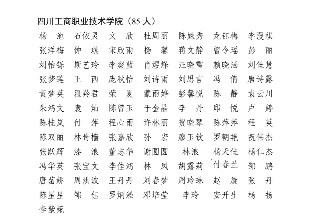 近日,四川省教育厅公布2026届“四川省优秀大学毕业生”名单,我院杨池等85名学子成功入选,充分展现出我院学子奋发进取、追求卓越的精神风貌。