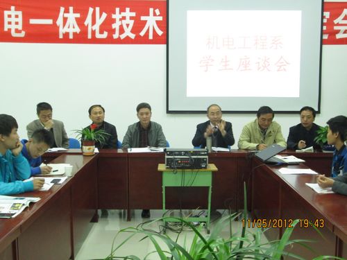 机电工程系于11月5日晚在机电楼会议室召开了学生座谈会。学院党委黄天贵副书记,机电系顾元国主任、基础部胡锐主任、教务处王昱副处长、督导办邓勇副所长等各职能部处负责人参加了会议,会议由机电系党总支副书记张思杨主持。