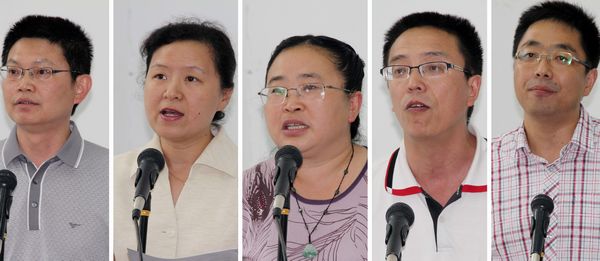 然后,机关学工系统代表万辉君副教授、教学系统杨柳副教授、教辅系统代表申素英副教授、后勤系统代表杨小拉处长、示范建设项目办代表赖晓凡教授先后发言,用热忱、朴实的言语表达了全院教职工与学院同呼吸、共命运的真挚情感,表达了坚定不移的创示决心和信心。