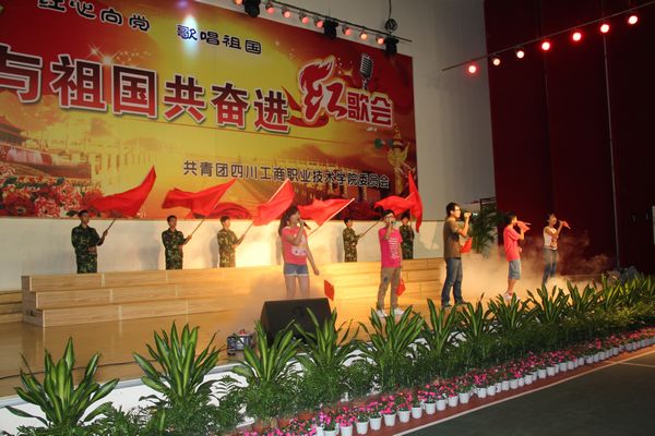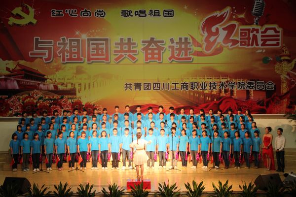 各系的六支合唱队不仅演唱了《四渡赤水出奇兵》、《弹起我心爱的土琵琶》、《翻身农奴把歌唱》等经典歌曲,更演唱了《爱我中华》、《在灿烂的阳光下》、《走向复兴》等充满着时代气息的歌曲,一首首耳熟能详的歌曲,回荡在工商校园。学院党委书记孙培生、党委副书记黄天贵等还饱含深情地上台朗诵了散文诗《中国的微笑》,红歌不仅唱出了工商职院人对党的赤诚与热爱,更唱出了工商职院人的豪迈气概。 |
