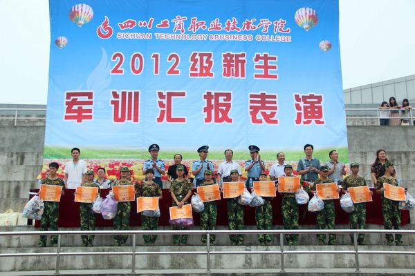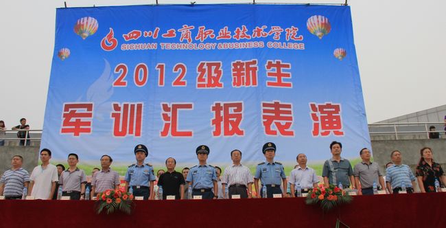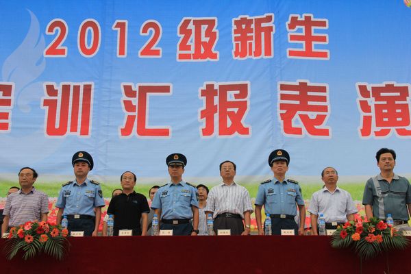 当天下午,学院在运动场举行2012级新生军训汇报表演。学院领导、承担军训任务的解放军95874部队的首长、学院有关部门负责人出席了并在主席台就座。本次活动由徐时彬副院长主持。汇报表演在庄严的《国歌》声中拉开帷幕。