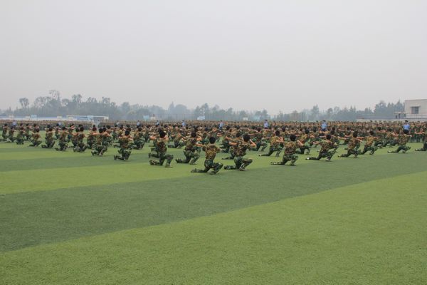 2400余名2012级新生组建的方队,呼着整齐的口令,迈着矫健的步伐,依次通过主席台,英姿飒爽,气势恢宏,这是9月7日下午在我院举行的2012级新生军训汇报表演中分列式表演上出现的一幕。