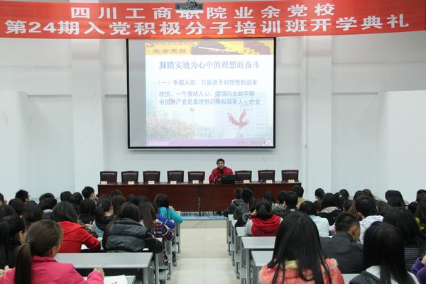 在庄严的国歌之后,党委书记孙培生同志宣读了《中共四川工商职业技术学院委员会关于举办第二十四期入党积极分子培训班的安排意见》,并向全体学员提出了希望和要求。