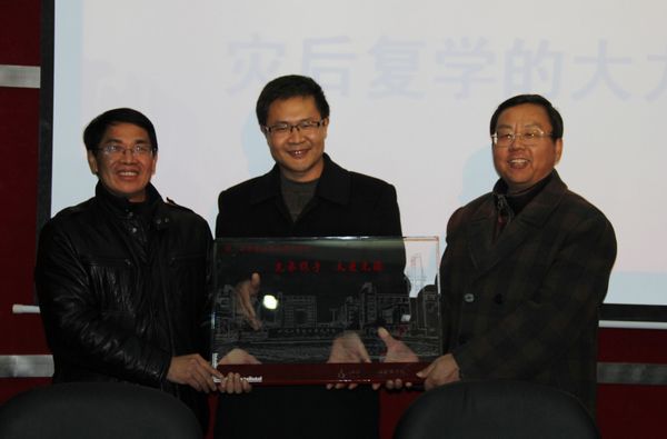 在我院在新校区落成之际,农科职院一行来到新校区,分享我们的喜悦,也带来了农科职院全体师生的祝贺。在我院举行元旦文艺晚会上,两校领导分别发表了热情洋溢的讲话。在参观完新校园后举行的座谈会上,宾主双方互赠了礼物,共同回顾了曾经同甘共苦的日日夜夜,客人对我院灾后重建取得的成果表示赞赏和祝贺,我院领导也对农科职院在危难时刻提供的帮助表示衷心的感谢,并希望两校继续携手合作,共创四川职教的辉煌。