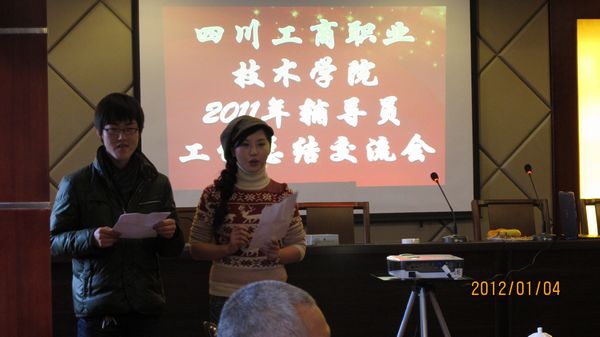 1月4日下午,学院在蕊鑫花园酒店召开2011年辅导员工作总结交流会。学院党委书记孙培生、党委副书记黄天贵、学生处处长梁正席及相关部门领导和各系辅导员参加了交流会。交流会由学生处副处长万明冲主持。