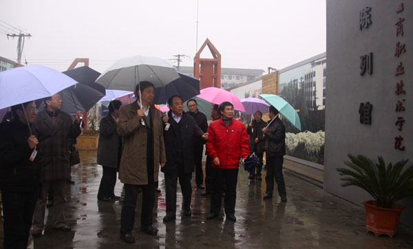 在学院领导班子和部门负责人的陪同下,省经信委领导参观了学院新校区,着重查看了设计艺术系作品展厅、素质拓展馆、校史陈列馆以及机电工程系实训基地。在随后的座谈会上,肖和平院长代表学院班子向经信委领导就学院抗震救灾、灾后重建、学院在教学招生就业等方面的恢复发展情况,学院下一步的规划,重点汇报了学院申报示范性院校的准备工作,希望得到上级领导的大力支持,再创学院辉煌。