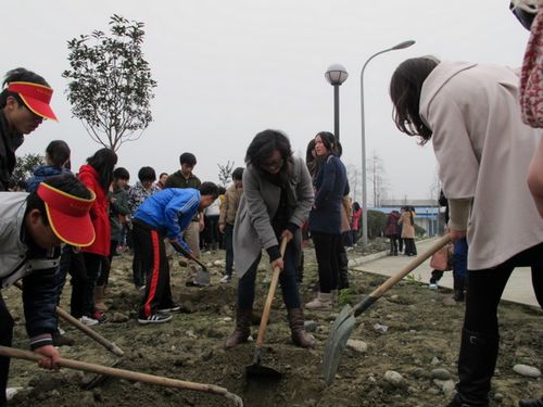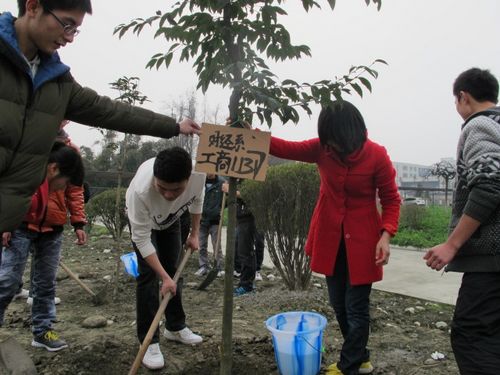 当天下午4点,志愿者同学们纷纷扛着锄头、铁锹,提着水桶,抬着自己班级购买的桂花树苗、香樟树苗等,来到足球场旁绿化空地。在院团委杨婧副书记和环境建设处的老师讲解完栽种树苗的注意事项后,便甩开膀子栽种起来,有的人挖坑,有的人扶苗,有的人培土、有的人浇水,个个忙得不亦乐乎,同学们用自己最诚挚的热情浇灌他们手下蓬勃的生命,用实际行动履行他们绿化环境的责任,同时他们也表达了对绿化校园的美好祝愿。植树活动结束后,原本荒凉的空地上树立起了一棵棵茁壮的小树,勾勒出这个春天别样的风情。