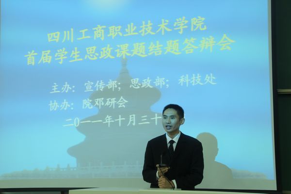日前,学院在第一教学楼B座104教室开展了首届学生思政课题结题答辩会,本次活动由我院宣传部、思政部、科技处主办,院邓研会协办。丁思勇、邓勇、曾钊、闫伟等老师出席答辩会并担任评委。宣传部部长丁思勇老师在答辩会前对答辩要求作了讲解和说明。