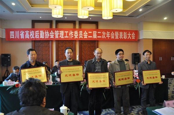 会议总结了2010-2011年全省高校后勤管理工作,部署了2012年的工作,表彰了2010-2011年度四川省高校后勤管理工作31个先进集体和89名先进个人。我院荣获2010-2011年度四川省高校后勤管理工作先进集体,生活服务处副处长戴晓云荣获2010-2011年度四川省高校后勤管理工作先进个人。西华大学、四川师范大学、成都电子机械高等专科学校、四川工程职业技术学院和有关领导在大会上作了后勤管理工作经验交流发言。