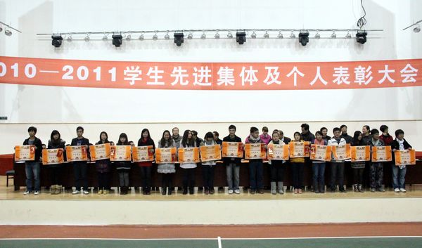 12月7日晚,学院2010—2011学年学生先进集体及个人表彰大会在学生素质拓展馆举行。学院领导孙培生、肖和平、李肇全、黄天贵、徐时彬、岳文喜、院长助理兼组织部长王开淮、院长助理邓春生以及相关部门负责人出席大会。表彰大会由学生处副处长万明冲主持。