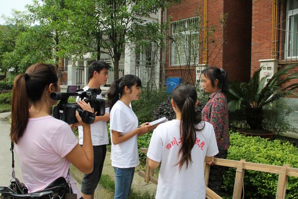 7月15日,都江堰市精神文明办公室易主任、学院宣传部部长丁思勇、团委副书记杨婧一行前往向峨乡鹿池新村、滨江街道金江社区、聚源镇、石羊镇金羊村等处看望慰问正在都江堰城乡开展暑期“三下乡”社会实践服务队的同学和指导老师。都江堰电视台记者随同前往,并对在鹿池新村开展“我与祖国共奋进,青春建功新农村” 暑期“三下乡”社会实践服务队开展阳光课堂教学和科技、文化、卫生及生活小常识宣传等志愿服务活动的情况进行了拍摄,对村民、指导老师、服务队同学进行了采访,并在当晚的《都视报道》节目中进行了播出。