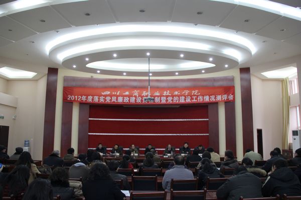 1月18日下午,学院在行政楼一楼会议室召开2012年度落实党风廉政建设责任制暨党的建设工作情况满意度测评会。全体中层以上干部、系主任助理、教代会代表、高级职称教师代表、民主党派代表、离退休职工代表、青年教师代表等104人参加了会议。会议由院长助理、组织部长王开淮同志主持。