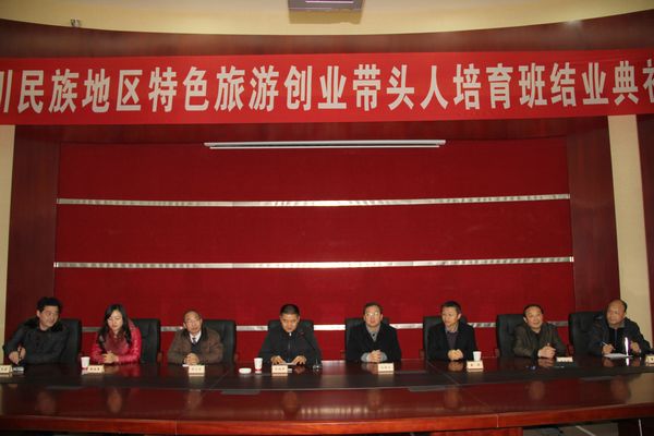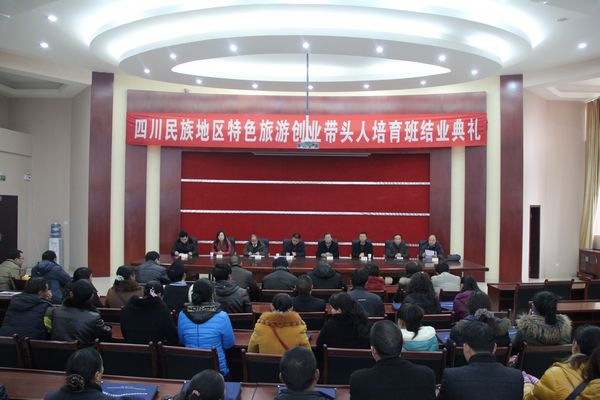 12月28日,四川民族地区特色旅游创业带头人培育班结业典礼在学院行政楼一楼会议室举行。省民委副主任、省民族经济开发办主任肖晓军,省民族经济开发办公室副主任蔡钦,省民开办副主任张丽萍,省民族经济开发办公室调研员青云,学院党委书记孙培生,党委副书记黄天贵,副院长徐时彬、岳文喜等领导出席结业典礼。