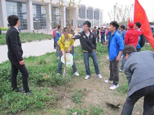 春回大地,万物复苏。3月12日,我院信息系电商11级、电商12级共14个班,在足球场旁的空地上进行了植树活动。
