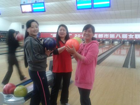 4月12日,“运动成都” 2013年成都市第八届女职工“体彩杯”保龄球比赛在成都市巨民保龄球馆举行。 由我院工会副主席任煚带队的9名女教工参加了比赛。
