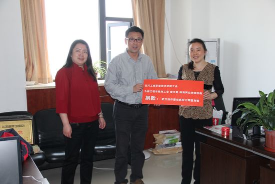 2012年5月,都江堰市锦堰学校黄文勇老师不幸患上白血病,2013年3月都江堰市外国语实验学校杨海老师不幸患上肝衰竭,他们的病情牵挂全市人民的心。为此,我院工会向全体教职工和学生发出倡议:伸出援手,奉献爱心。各部门工会认真组织传达,广大教职工为生病同胞伸出援手,尽我们之力去帮助他们及家人。滴水能汇成江河, 只要大家都能献出一份爱心,或许就能挽救一个年轻鲜活的生命!短短时间内,全院师生共捐款 27120 .10元。今天下午,在我院工会副主席任煚带领下,我院工会一行三人已将此笔善款交与都江堰市教育工会主任邓开群手中,并请她代为转达学院8000余名师生对病人及其家属的慰问之情,让我们共同祝愿他们早日康复。