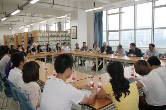 捐赠仪式后,拜耳(中国)有限公司徳友汉先生、贺孟升先生等一行与我院学生代表举行了座谈,徳友汉先生用风趣幽默、富有哲理的语言回答了同学们关于学习、生活以及德国的风土人情的提问,他勉励同学们要保持乐观自信的精神、与时俱进的学习态度,要有国际化的视野和创新精神,拜耳集团欢迎大家成为其中的一员。座谈会始终洋溢着轻松的氛围,学院黄天贵副书记及相关部门负责人参加座谈会。