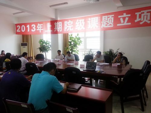 2013年上半年院级课题立项答辩会于6月18日至19日在学院行政办公楼二楼会议室举行,参与此次答辩的院级课题共有七项,分为三个组,每组有答辩专家3-4人。