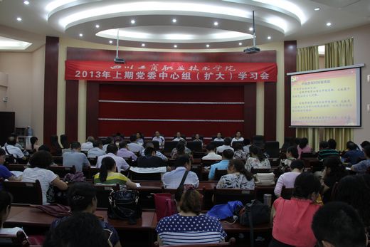 为进一步学习贯彻党的十八大和省委十届三次全会精神,扎实推进“中国梦”主题教育活动,同时,总结本期工作,部署安排下期工作,推动学院更好更快发展,7月9日,学院召开2013年上期党委中心组(扩大)学习会。全体中层以上干部、民主党派人士代表、副高以上职称教师代表、青年教师代表、离退休同志代表等110余人参加了会议,会议由徐时彬副院长主持。