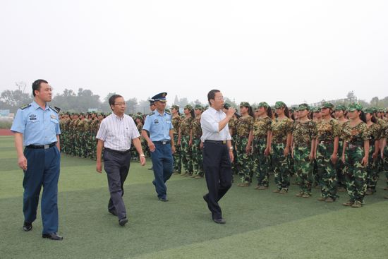 学院党委书记孙培生、院长李春明,95784部队政委田满堂大校对军训方队进行了检阅。各军训方队此起彼伏的“为学院争光”的口号声,展现出同学们的青春朝气和在军训中积攒的巨大力量。
