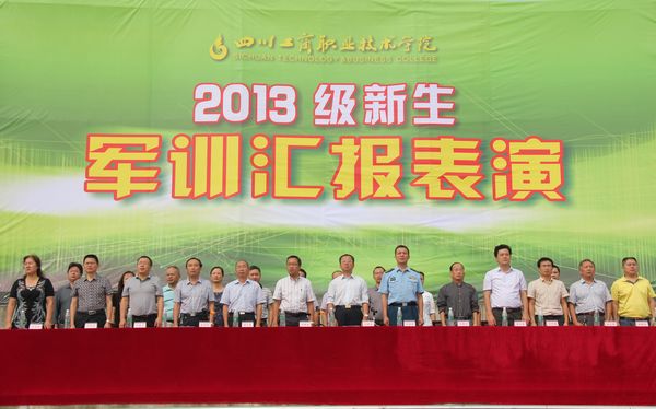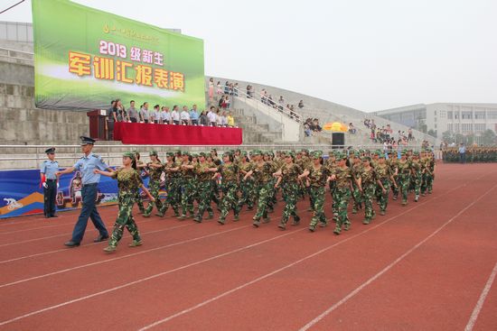 9月13日,2013级新生军训汇报表演在学院田径运动场举行。学院领导、承担军训任务的解放军95784部队的首长、学院有关部门负责人到现场出席,军训教官和2013级新生进行了汇报表演。