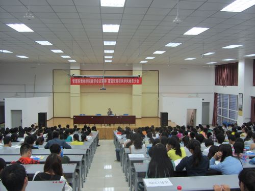 管理系于9月24日下午5时30分举行了建设优良学风动员大会。会议在学院2B演讲厅举行。管理系全体辅导员、全体新生及各老生班学生干部参加了会议。