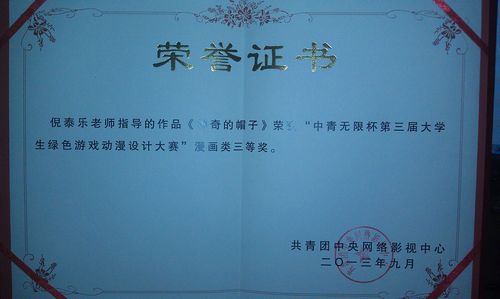“中青无限杯”第三届大学生绿色游戏动漫设计大赛评奖结果于日前揭晓,我院设计艺术系强芸同学的作品《神奇的帽子》荣获三等奖,指导老师倪泰乐被聘请为“大学生绿色游戏动漫设计大赛”组委会专业委员。