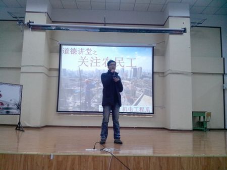 12月8日晚,机电工程系在2教B座演讲厅承办了主题为“关注农民工”的学院第13期道德讲堂活动。机电工程系党总支副书记张思杨、团学会指导老师、该系全体大一学生和入党积极分子及兄弟系主席团代表参加活动。