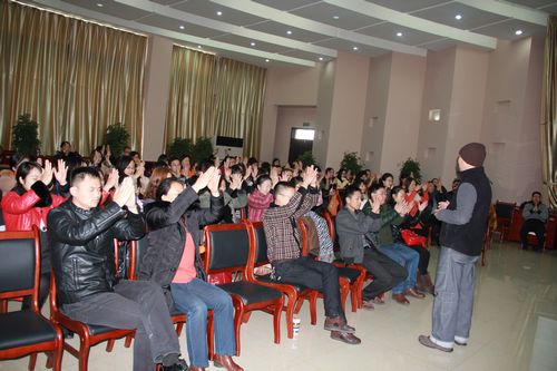 马桶老师针对高校教师的特点,进行了精心的设计,以面对面沟通、互动的形式开展培训,让大家在轻松、活跃的气氛中交流学习,通过类似于体育课中的热身运动的小游戏,迅速调动了老师们的热情,振奋了周日一大早到校学习的萎靡精神。接下来马桶老师采用提问引导的方式让老师们积极主动的思考、相互分享;在分享的过程中,不断通过多媒体为老师们播放图片、视频等,引发大家的共鸣、感动,使大家领悟到深刻的寓意。所有的分享紧紧围绕着微笑、改善、感恩为主线,让参训老师进入内心深处积极地反思,体会生命的价值和意义。