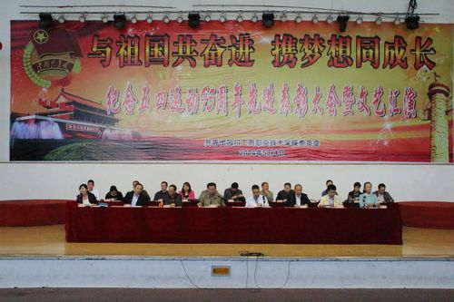 5月4日下午2时30分,学院纪念五四运动95周年暨团内先进表彰大会在素质拓展馆隆重召开。学院党委书记孙培生、院长李春明、副厅级调研员兼院工会主席李肇全、党委副书记黄天贵、副院长徐时彬、院长助理王开淮、团委副书记杨婧、学院各相关部门的负责领导、院学生会主席李杨同学以及近1100名团员青年参加了本次纪念五四运动95周年暨团内先进表彰大会。