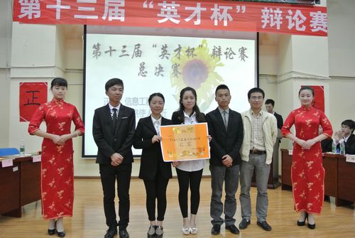 经过一个多小时的激烈角逐,最终正方信息工程系代表队以1093分的高分取得了本届“英才杯”辩论赛的冠军,反方轻工工程系代表队以1003分获得亚军。学院党委委员、院长助理王开淮为获得冠军的信息工程系颁发了奖状;正方代表队三辩刘礼明同学获得本届辩论赛“最佳辩手”称号。学生工作处处长梁正席为“最佳辩手”颁发了荣誉证书。