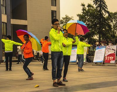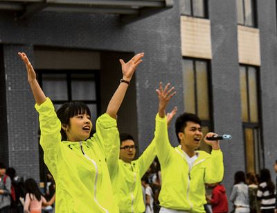 随着《我相信》的动感音乐,身着明亮色彩服装的心理协会的同学们从小广场两侧迅速集结到一起开始快闪表演。同学们整齐划一的动作、自信阳光的笑脸立刻吸引了很多老师和同学们到场围观。欢快、激昂的开场曲之后,《隐形的翅膀》如一首轻柔的诗歌娓娓道来,婉转的旋律传递了不论遇到什么困难都要相信自己、勇往直前的坚毅与力量。一首《我的未来不是梦》则将全场的氛围推向了高潮,同学们活力四射的舞蹈和深情并茂的演唱,将对未来的憧憬、勇敢乐观的心态展现无遗。最后,同学们打开“走向心世界 传递正能量”的横幅, 而这正是今年我院5.25心理健康月的主题。