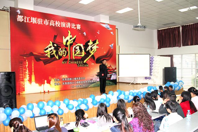 6月13日下午,在我院J2B演讲厅隆重举行了都江堰驻市高校“我的中国梦”演讲比赛。本次演讲比赛是由我院与四川农业大学都江堰校区、电子科技大学、成都东软学院、四川水利职业技术学院五所高校演讲协会发起并由共青团都江堰市委会商各驻市高校团委举行的一场比赛。团成都市委党组成员、纪检组长范才全,团成都市委学校部副部长向勇以及团都江堰市委、都江堰文广新局、都江堰市精神文明办的负责同志,我院党委书记孙培生、党委副书记黄天贵、院长助理王开淮等领导出席了此次活动。本次活动的评委由著名作家南怀瑾大师的关门弟子王国平、夏寂书院创始人夏莉莉以及各高校团委书记担任。