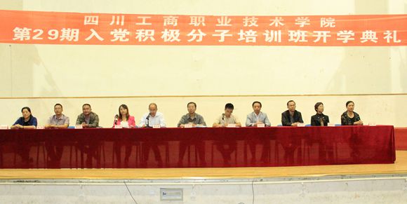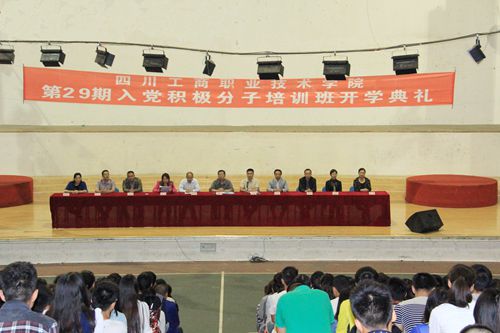 10月9日,学院业余党校第29期入党积极分子培训班在素质拓展馆隆重开班。党委委员、院长助理王开淮主持了典礼,党委书记孙培生、党委副书记、业余党校校长黄天贵、组织部副部长孔蕊以及各系党总支副书记出席了仪式。