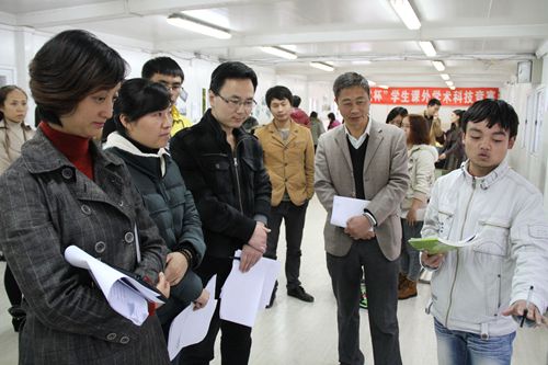 10日下午,竞赛第一场在学院校史陈列馆举行,院团委特邀请了产学合作中心、科技处 以及基础部的老师和专家对参赛的13件作品进行现场分类观摩和答辩。参与本次竞赛的学生作品共分为三类,分别是哲学、社科类(含调查报告)、自然科学类、科技发明类。每一件作品将会在作者现场演示之后,接受评审组从作品可行性、创新性、科学性和先进性,以及实用性等方面的考察与答辩。