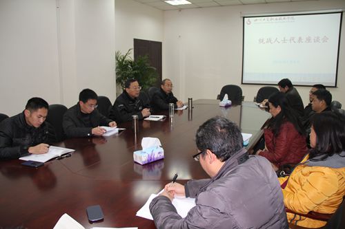 根据党员干部年度民主生活会方案的要求,2015年1月9日上午,学院在行政楼四楼会议室召开了统战人士代表座谈会,着重收集统战人士对学院班子的意见和建议。3名民主党派人士和5名无党派人士代表参加座谈,学院党委书记孙培生、党委副书记黄天贵、院长助理王开淮出席会议并在会上发言。会议由统战部部长丁思勇主持。