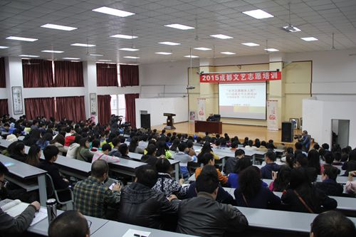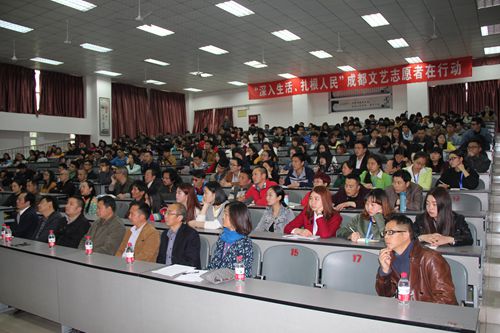 3月27日,由成都市文联和都江堰市委宣传部主办,成都市文艺志愿者协会等协办的“文艺志愿服务人民”2015成都文艺志愿培训暨中国画家第一村名家讲坛首场讲座在我院举行。