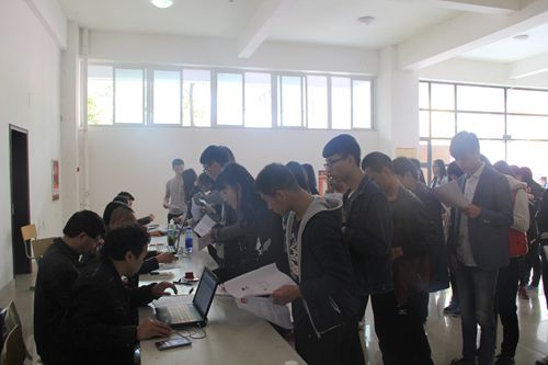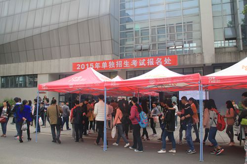 2015年单独招生考试于4月11日在全省36所高职学院校举行。4月10日,在学院素质拓展馆大厅里排起了长龙,我院2015年单独招生考试报名在这里举行。