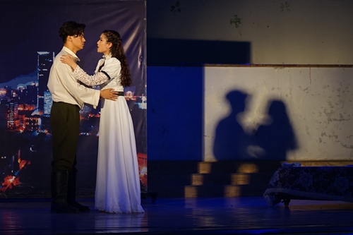 此次演出的剧目是以红色经典小说《钢铁是怎样炼成的》中的主人翁保尔.柯察金和冬妮娅的爱情为故事线索,采用剧中剧的形式以当代人的视角重新诠释了无产阶级的钢铁战士保尔的情感世界,让钢铁战士在舞台上变得有血有肉有激情,从而旧梦重圆获得了美好的爱情。《保尔.冬妮娅》的故事跌宕起伏、扣人心弦,令人荡气回肠、感叹唏嘘,赢得了观众阵阵掌声,取得了圆满成功。